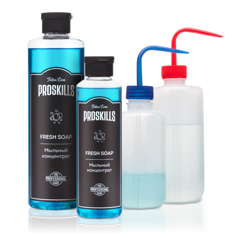 Все продукты линейки разработаны профессиональными косметологами специально для использования в процессе нанесения татуировки. Все средства сертифицированы и имеют безопасный состав, основанный на натуральных и эффективных ингредиентах. Продукция ProSkills помогает мастеру максимально качественно выполнить работу. Заботится о клиенте, делая процесс нанесения татуировки более легким и комфортным.